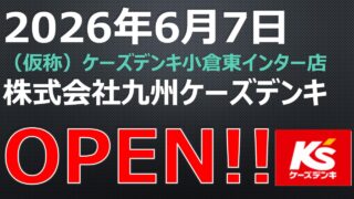 家電量販 OPEN!【2026年6月7日】(仮称)ケーズデンキ小倉東インター店 この記事は、福岡県北九州市小倉南区長野三丁目2277 番1 外に2026年6月7日OPEN予定の(仮称)ケーズデンキ小倉東インター店について書かれています。 2025.10.29 家電量販