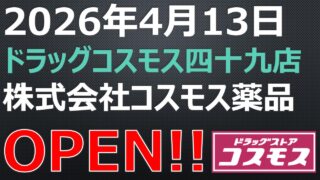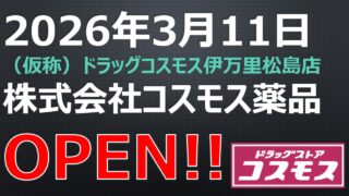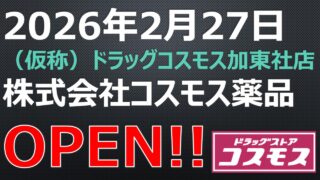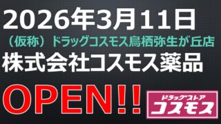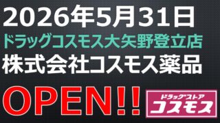 ドラッグストア OPEN!【2026年5月31日】薬王堂野木友沼