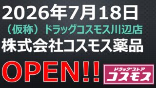 ドラッグストアOPEN予定!【2026年9月30日】クスリのアオキ北横地店