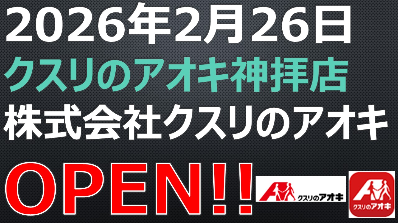 OPEN!【2026年2月26日】クスリのアオキ神拝店