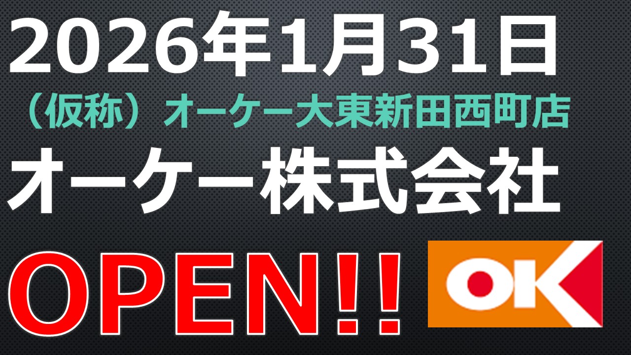 OPEN!【2026年1月31日】(仮称)オーケー大東新田西町店