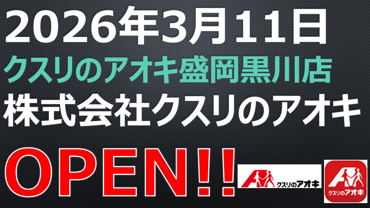 OPEN!【2026年3月11日】クスリのアオキ盛岡黒川店
