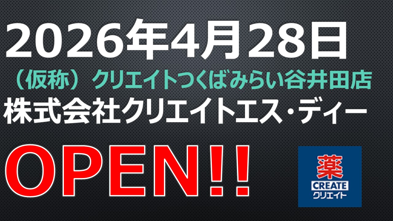 OPEN!【2026年4月28日】(仮称)クリエイトつくばみらい谷井田店