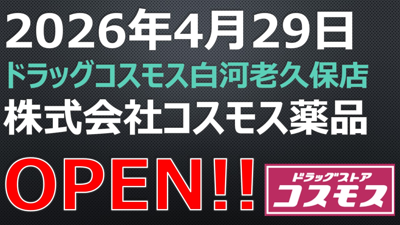 OPEN!【2026年4月29日】ドラッグコスモス白河老久保店