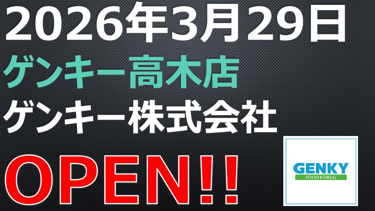 OPEN!【2026年3月29日】ゲンキー高木店 スポンサーリンク X Facebook はてブ LINE コピー 2025.10.11 スポンサーリンク OPEN!【2026年3月29日】ゲンキー高木店 新店予定日:2026年3月29日 住所:福井県福井市高木中央3丁目2005 ほか 企業名:ゲンキー株式会社 店舗名:ゲンキー高木店 営業時間:開店時刻:午前9時00分~閉店時刻:午後9時00分 店舗面積:1,599㎡ 駐車場:60台 駐輪場:8台 公式サイト:ゲンキー株式会社 公告:ゲンキー高木店