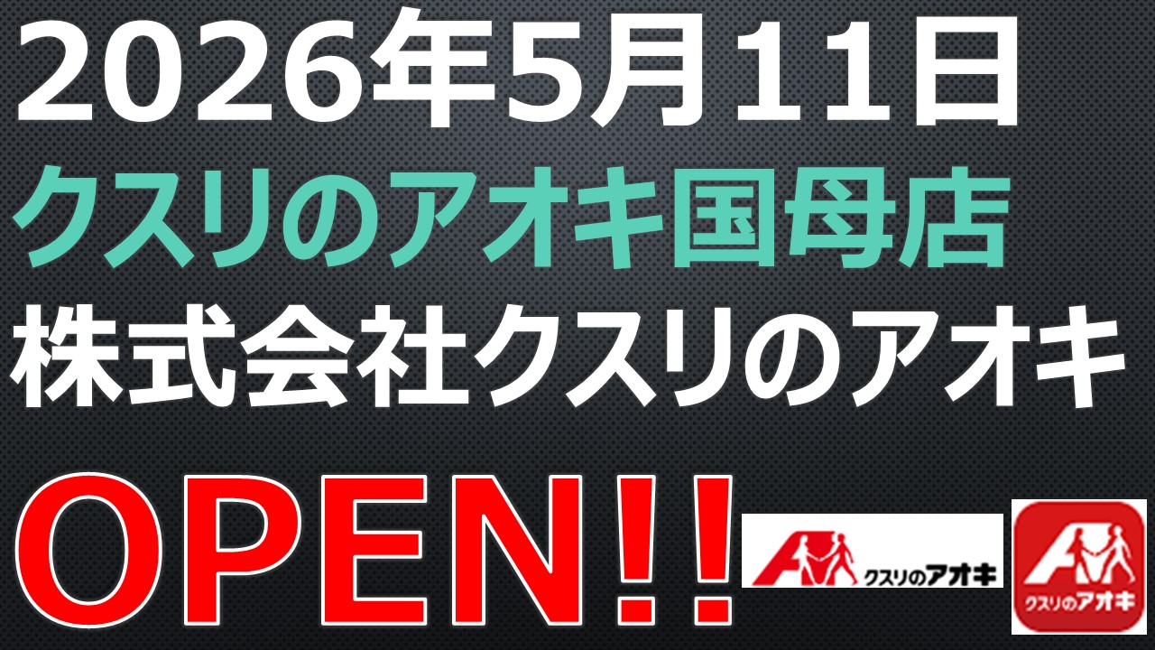 OPEN!【2026年5月11日】クスリのアオキ国母店