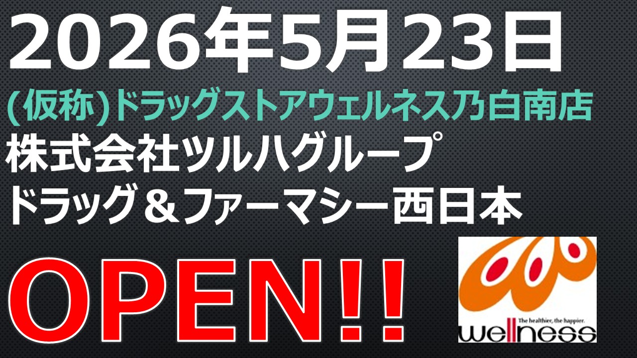 OPEN!【2026年5月23日】(仮称)ドラッグストアウェルネス乃白南店
