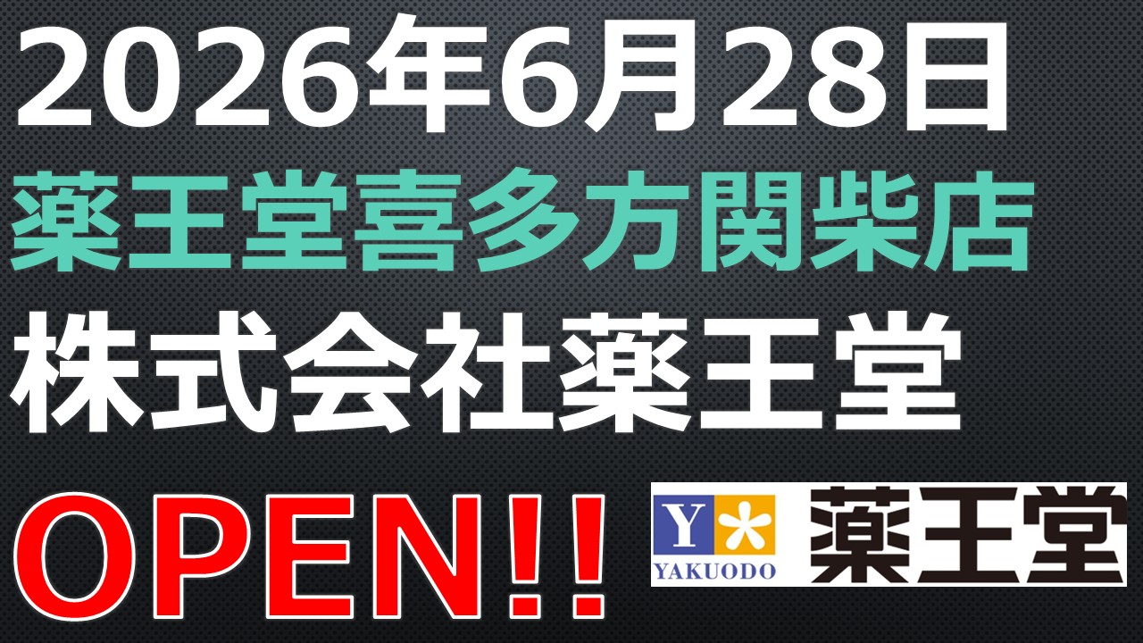 公告:薬王堂喜多方関柴店