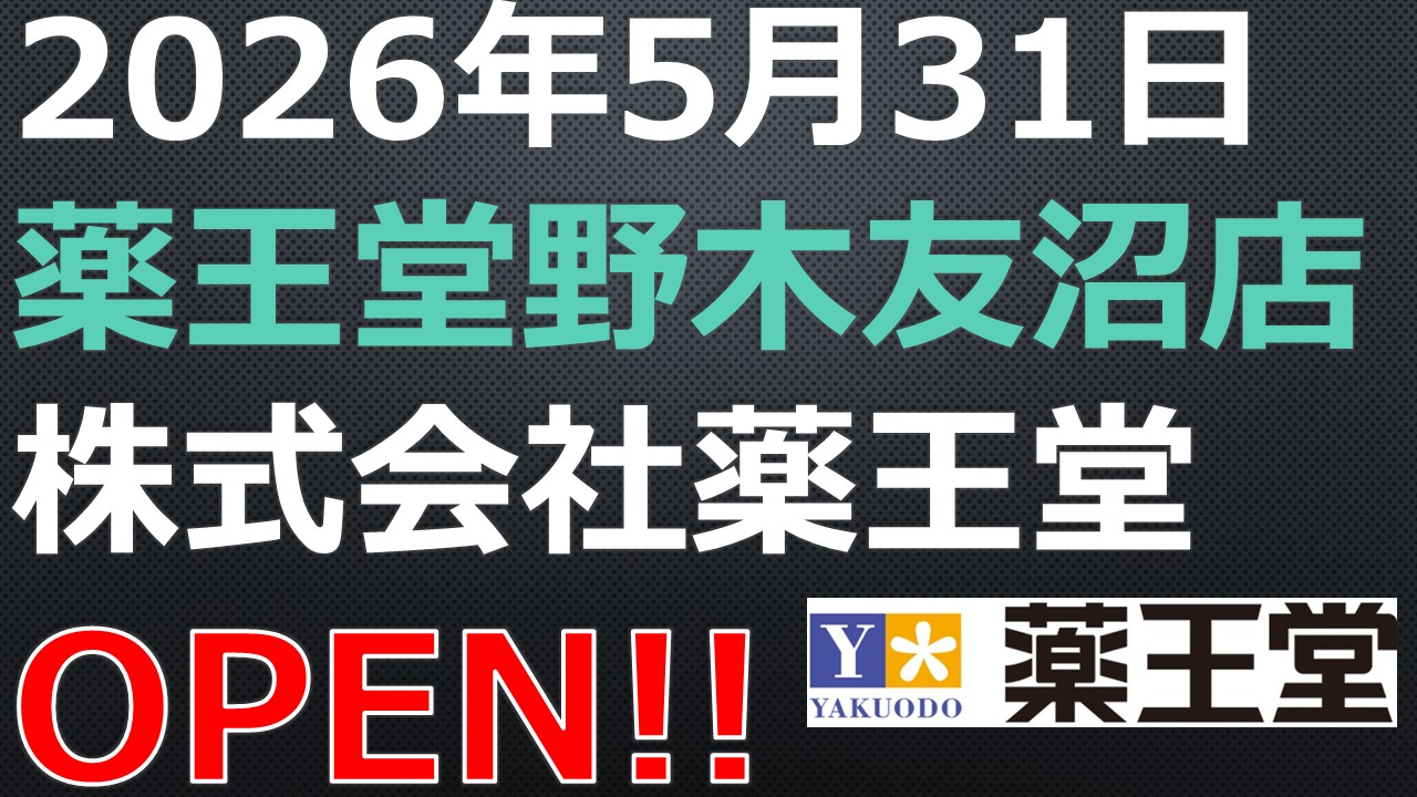 OPEN!【2026年5月31日】薬王堂野木友沼店