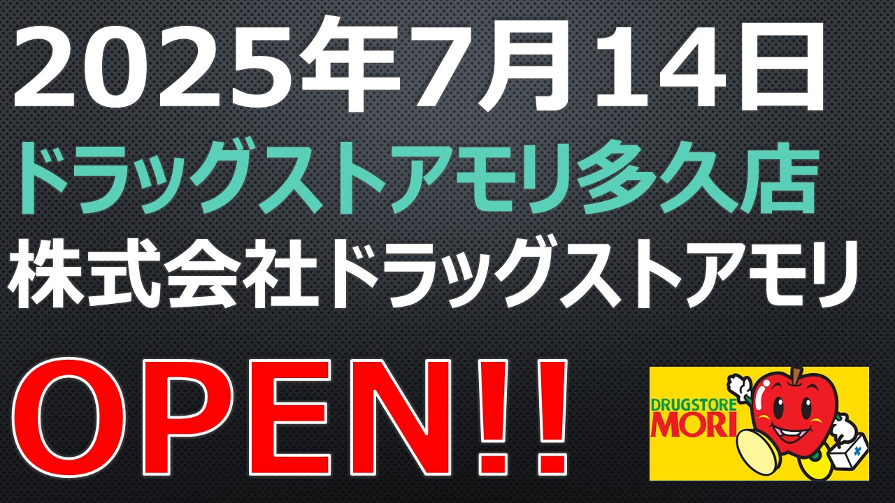 OPEN!【2026年7月14日】ドラッグストアモリ多久店