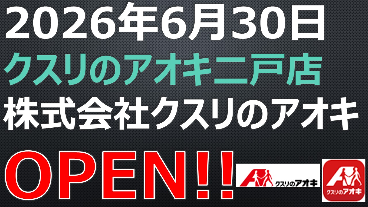 OPEN!【2026年6月30日】クスリのアオキ二戸店