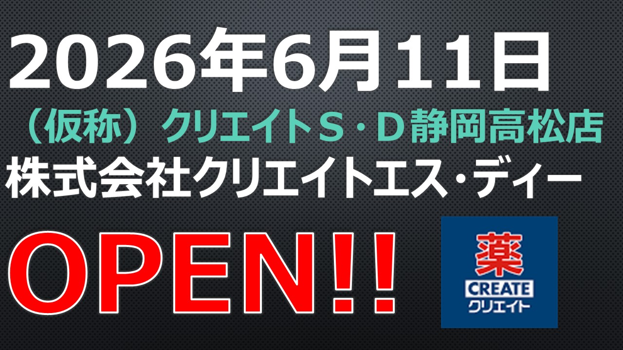 OPEN!【2026年6月11日】(仮称)クリエイトS・D静岡高松店