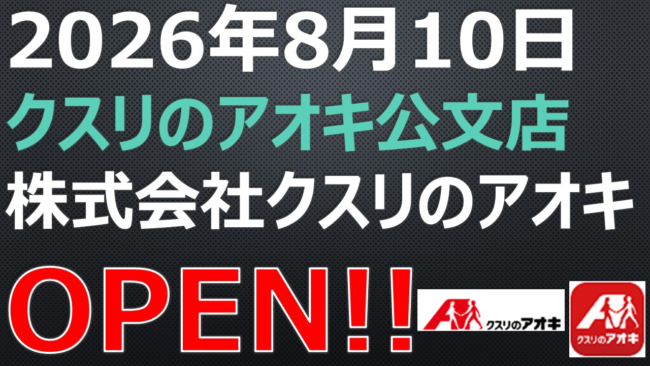 OPEN!【2026年8月10日】クスリのアオキ公文店