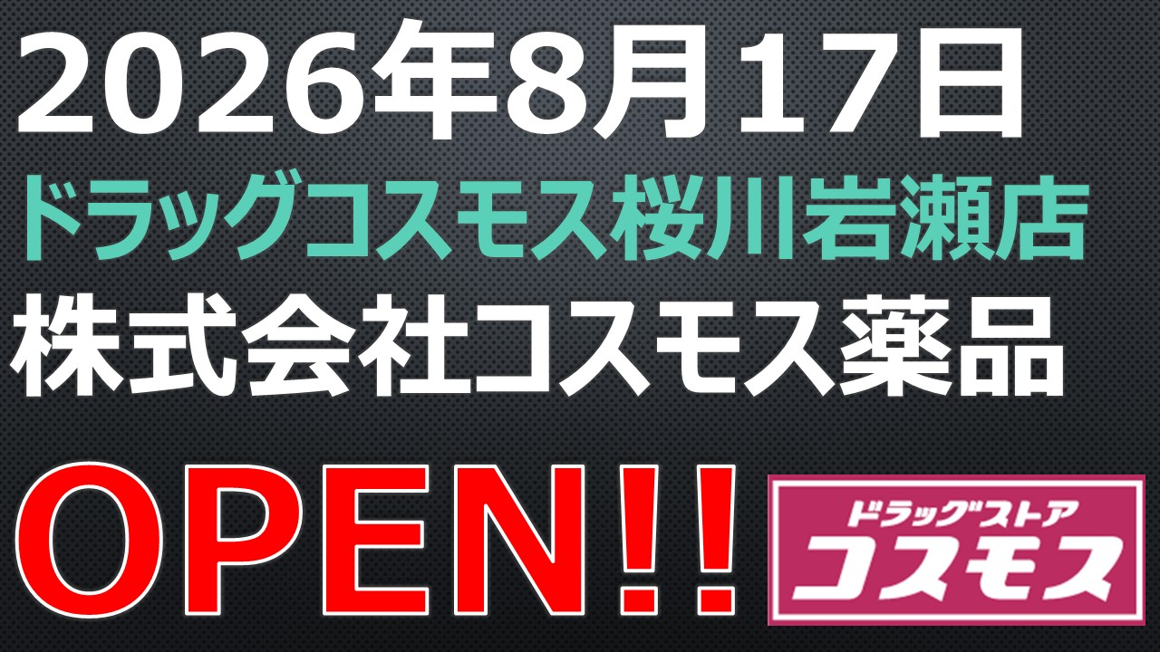 OPEN!【2026年8月17日】ドラッグコスモス桜川岩瀬店