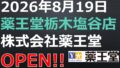 OPEN!【2026年8月2日】薬王堂栃木茂木店スポンサーリンク X Facebook はてブ LINE コピー 2026.01.21スポンサーリンク OPEN!【2026年8月2日】薬王堂栃木茂木店新店予定日:2026年8月2日住所:栃木県芳賀郡茂木町三坂土地区画整理事業3街区1 企業名:株式会社薬王堂店舗名:薬王堂栃木茂木店営業時間:開店時間:午前8時00分、閉店時間:午後10時00分店舗面積:1,191㎡駐車場:38台駐輪場:8台公式サイト:株式会社薬王堂公告:薬王堂栃木茂木店