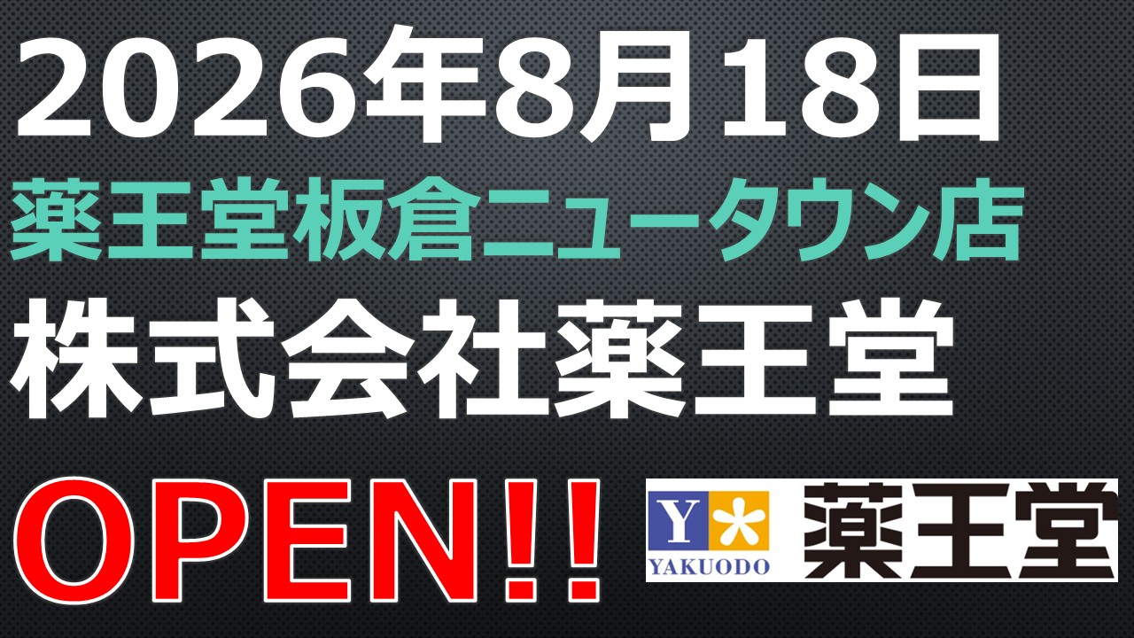 OPEN!【2026年8月18日】薬王堂板倉ニュータウン店