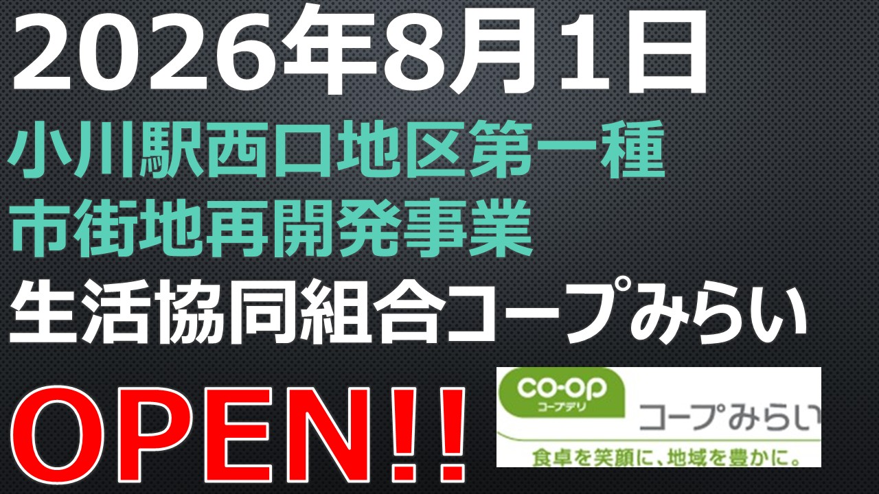 OPEN!【2026年8月1日】小川駅西口地区第一種市街地再開発事業