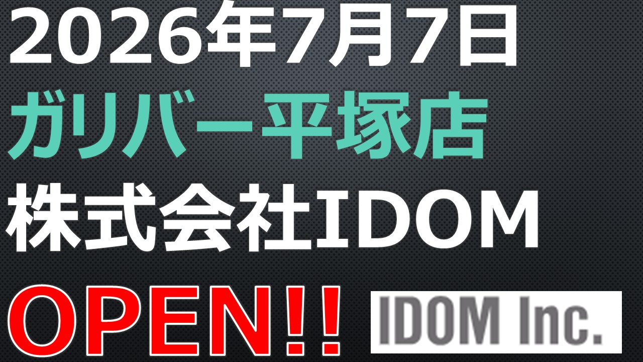 OPEN!【2026年7月7日】ガリバー平塚店スポンサーリンク X Facebook はてブ LINE コピー 2026.01.24スポンサーリンク OPEN!【2026年7月7日】ガリバー平塚店新店予定日:2026年7月7日住所:神奈川県平塚市上平塚222番地 外 企業名:株式会社IDOM店舗名:ガリバー平塚店営業時間:開店時間:午前10時00分、閉店時間:午後8時00分店舗面積:5,151㎡駐車場:15台駐輪場:0台公式サイト:株式会社IDOM公告:ガリバー平塚店
