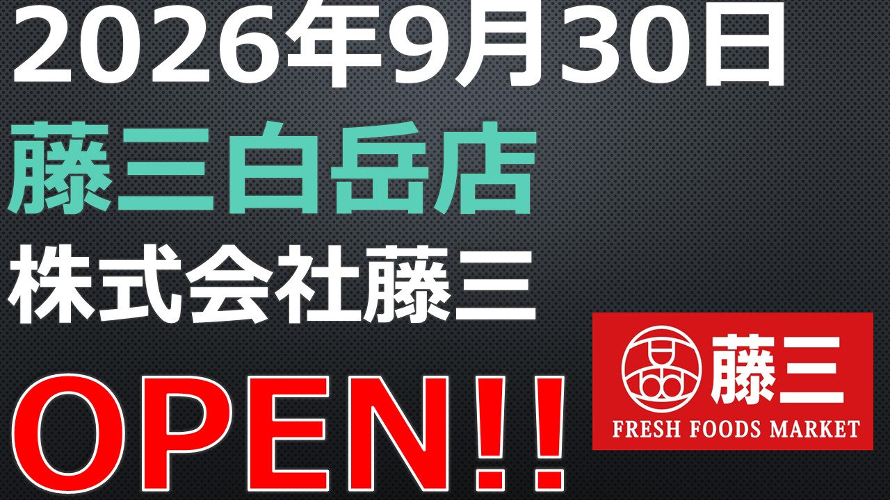 OPEN予定!【2026年9月30日】藤三白岳店スポンサーリンク X Facebook はてブ LINE コピー 2026.03.01スポンサーリンク OPEN!【2026年9月30日】藤三白岳店新店予定日:2026年9月30日住所:広島県呉市広両谷一丁目11590番1 企業名:株式会社藤三店舗名:藤三白岳店営業時間:開店時間:午前8時00分、閉店時間:午後11時00分店舗面積:4,654㎡駐車場:181台駐輪場:145台公式サイト:株式会社藤三公告:藤三白岳店