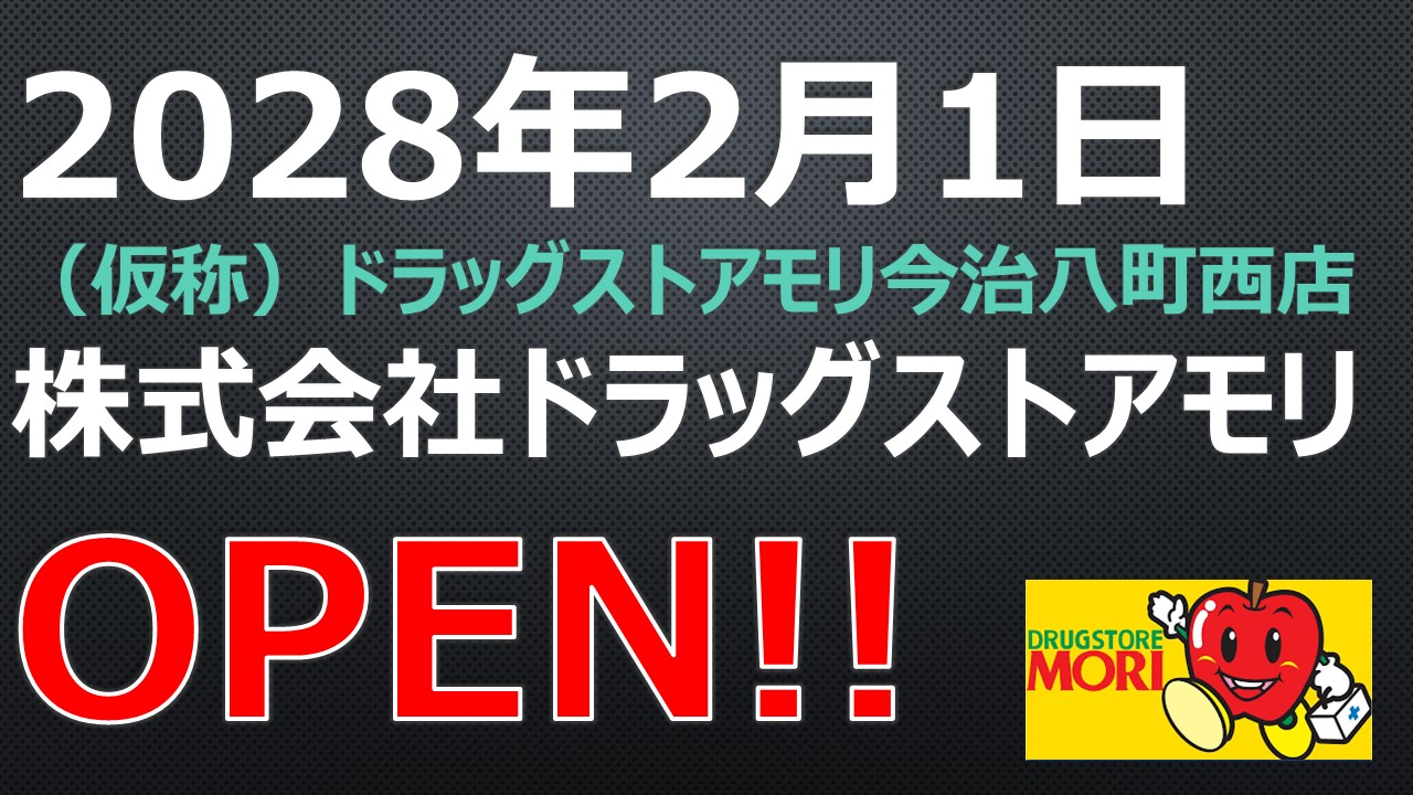 OPEN予定!【2028年2月1日】(仮称)ドラッグストアモリ今治八町西店