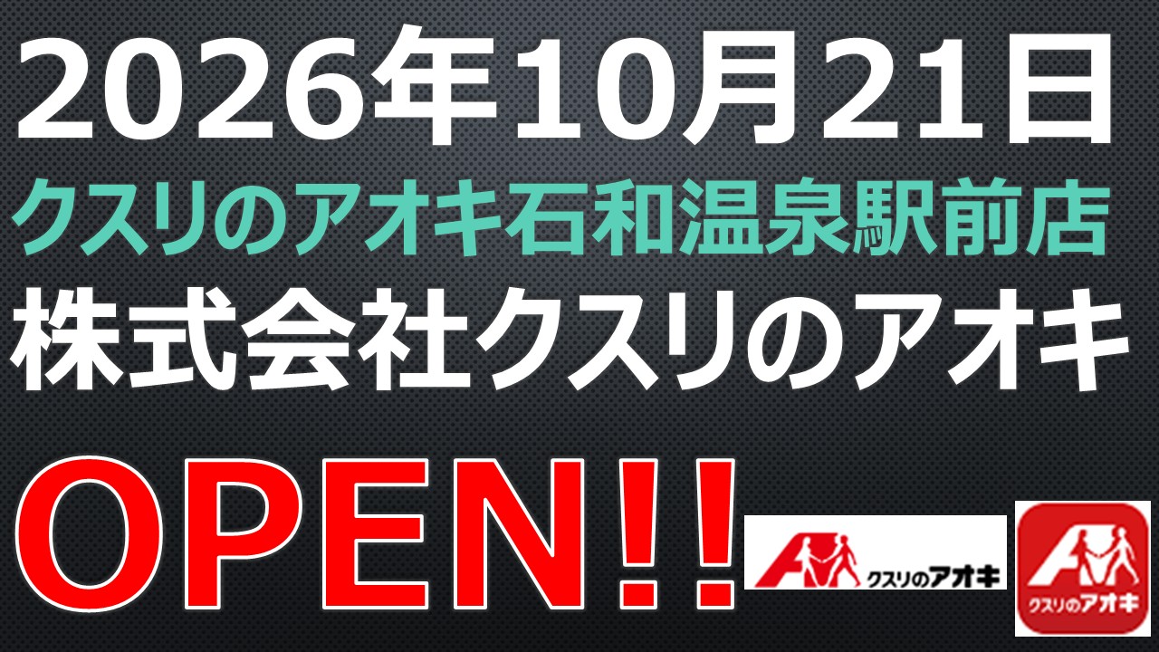 OPEN予定!【2026年10月21日】クスリのアオキ石和温泉駅前店