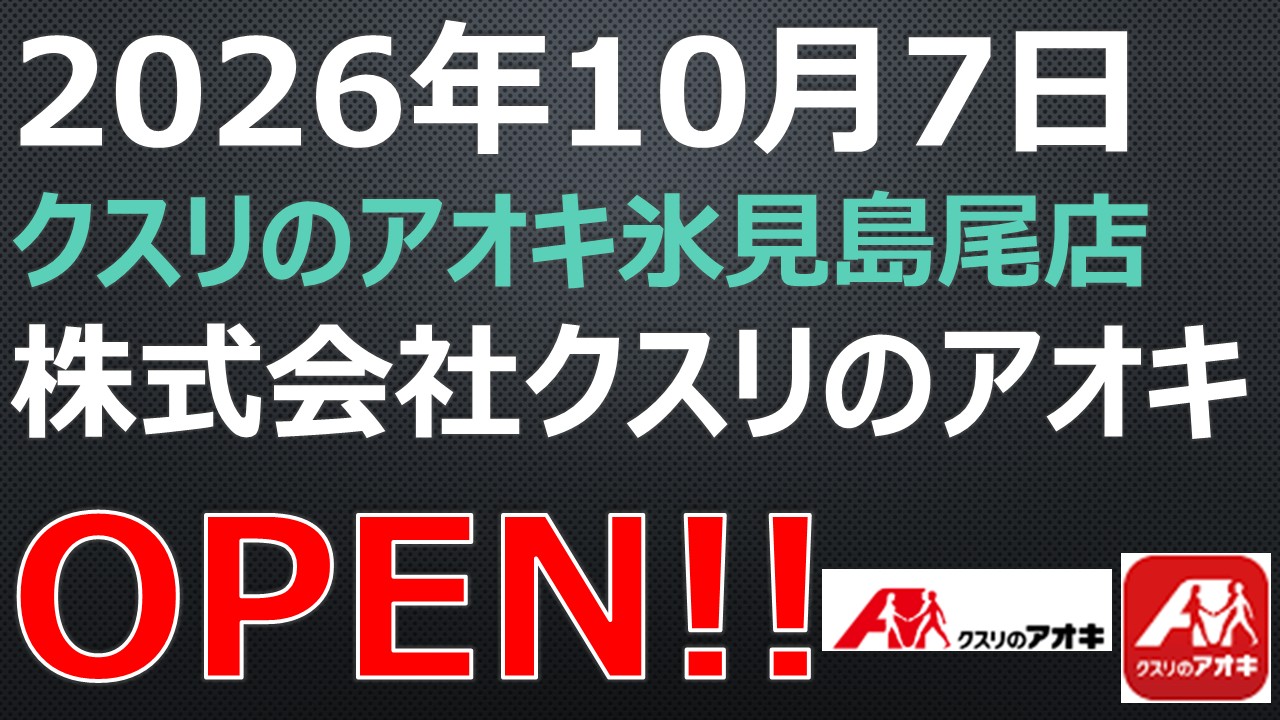 OPEN予定!【2026年10月7日】クスリのアオキ氷見島尾店