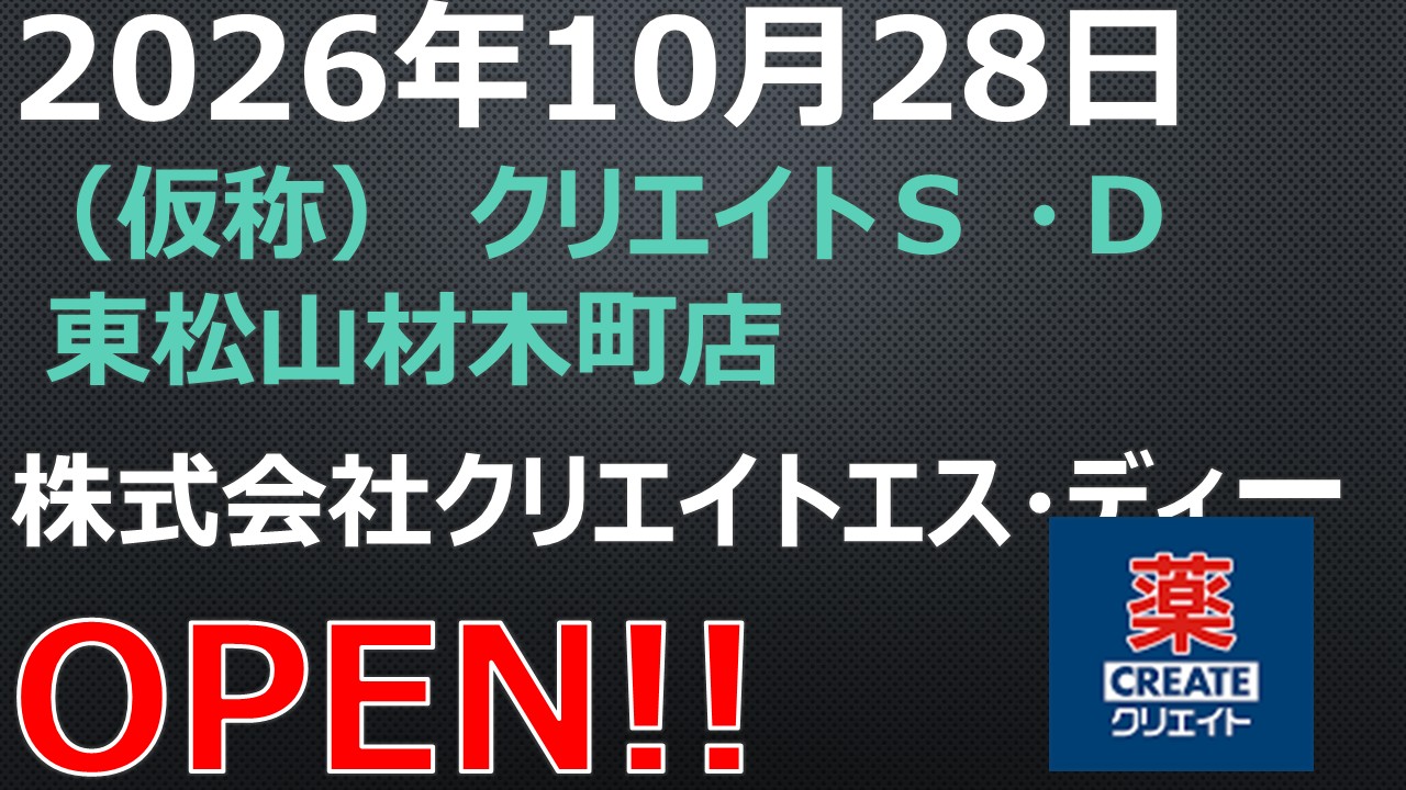 OPEN予定!【2026年10月28日】(仮称) クリエイトS ・D 東松山材木町店