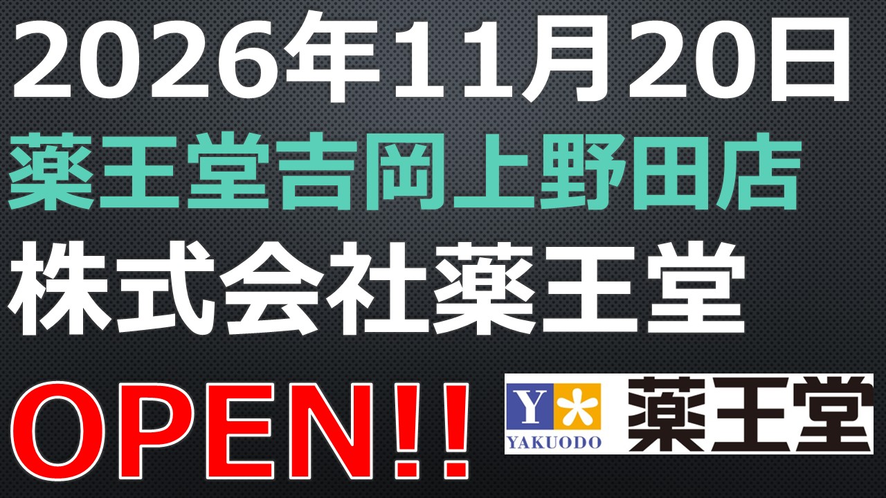 OPEN予定!【2026年11月20日】薬王堂吉岡上野田店