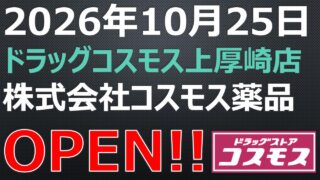 ドラッグストアOPEN予定!【2026年10月25日】ドラッグコスモス上厚崎店