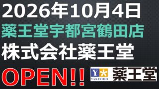 ドラッグストアOPEN予定!【2026年10月4日】薬王堂宇都宮鶴田店