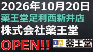 ドラッグストアOPEN予定!【2026年10月20日】薬王堂足利西新井店