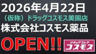 ドラッグストア OPEN!【2026年4月22日】(仮称)ドラッグコスモス美園店 この記事は、和歌山県和歌山市美園町四丁目 10 番外に2026年4月22日OPEN予定の(仮称)ドラッグコスモス美園店について書かれています。 2025.09.29 ドラッグストア