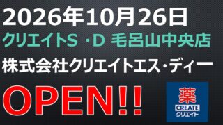 ドラッグストア OPEN予定!【2026年10月26日】クリエイトS ・D 毛呂山中央店