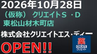 ドラッグストア OPEN予定!【2026年10月28日】(仮称) クリエイトS ・D 東松山材木町店
