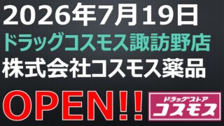 ドラッグストアOPEN!【2026年7月19日】ドラッグコスモス諏訪野店