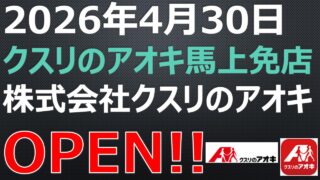 ドラッグストア OPEN!【2026年4月30日】クスリのアオキ馬上免店 この記事は、福井県越前市馬上免町8番1 ほかに2026年4月30日OPEN予定のクスリのアオキ馬上免店について書かれています。 2025.10.15 ドラッグストア