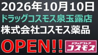 ドラッグストア OPEN予定!【2026年10月10日】ドラッグコスモス泉玉露店