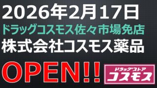 ドラッグストア OPEN!【2026年2月17日】ドラッグコスモス佐々市場免店 この記事は、長崎県北松浦郡佐々町市場免字馬場添30番1 ほかに2026年2月17日OPEN予定のドラッグコスモス佐々市場免店について書かれています。 2025.10.01 ドラッグストア