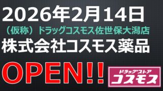 ドラッグストア OPEN!【2026年2月14日】(仮称)ドラッグコスモス佐世保大潟店 この記事は、長崎県佐世保市大潟町60番153、60番210に2026年2月14日OPEN予定の(仮称)ドラッグコスモス佐世保大潟店について書かれています。 2025.08.08 ドラッグストア